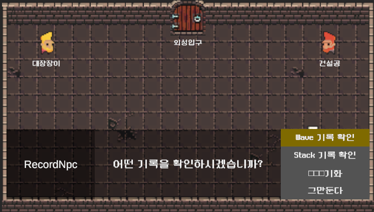 서기NPC에게 기록을 확인 할 수 있게 만들면 끝이다.