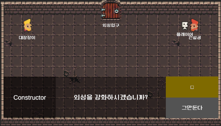 이를 강화하는 로직을 두고, 투사체개수, 공격속도,power의 강화가능 수를 WAVE의 총 합으로 두어 작동하게했고, 가운데에있는 저 성 오브젝트의 체력은 기본 10에 MaxStack*5값을 더해주었다.